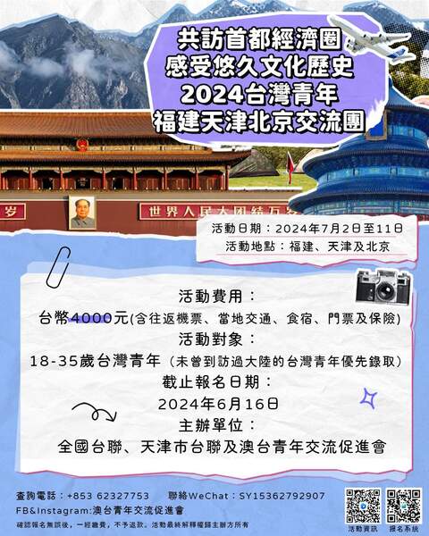 【活動報名】共訪首都經濟圈·感受悠久文化歷史2024台灣青年福建天津北京交流團現正接受報名