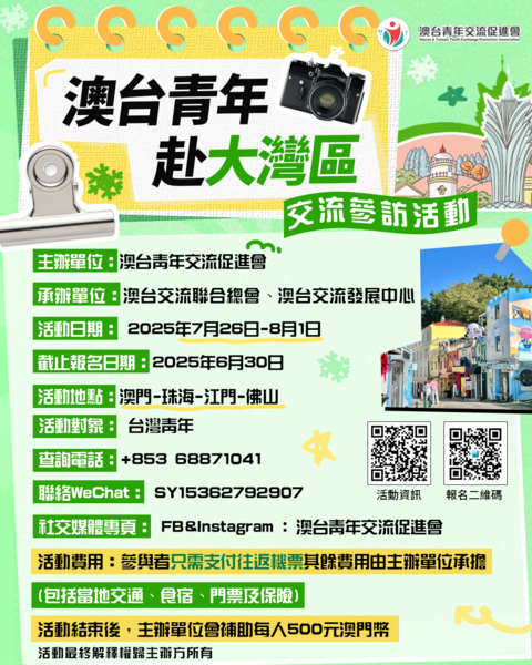 【活動報名】澳台青年赴大灣區交流參訪活動現正接受報名