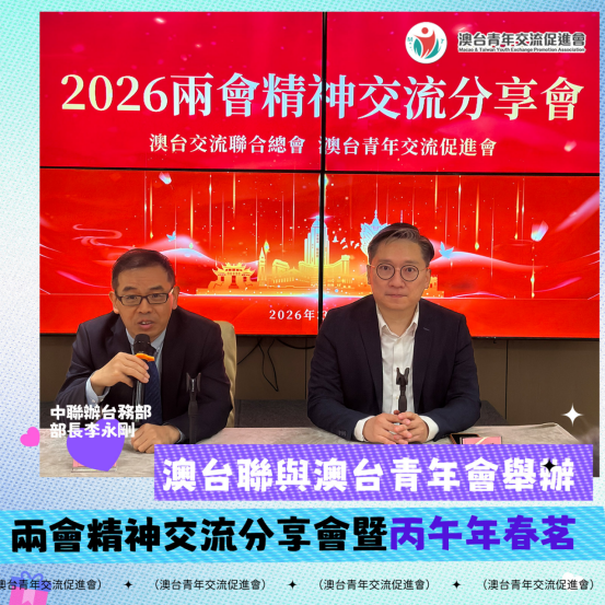 澳台交流聯合總會和澳台青年交流促進會舉辦“2026年兩會精神交流傳達會”及“丙午年春茗”,3月15日晚假華都酒店王子海鮮酒家宴會廳舉行。